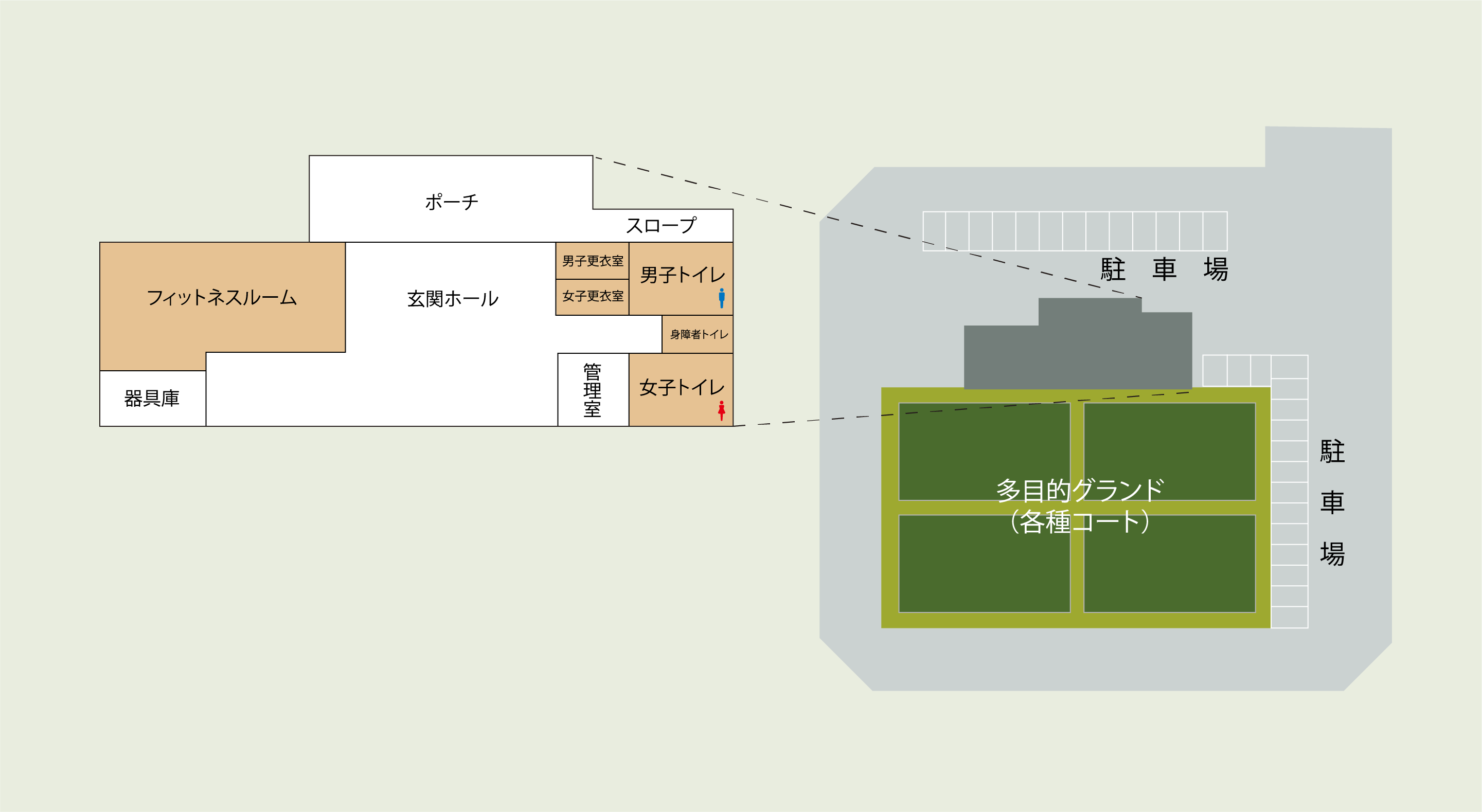 ※全面人工芝使用。テニスコート2面、ゲートボールコート4面、フットサル2面での利用が可能です。他にも、多様な利用ができます。 注)スパイクシューズでの利用は禁止です。